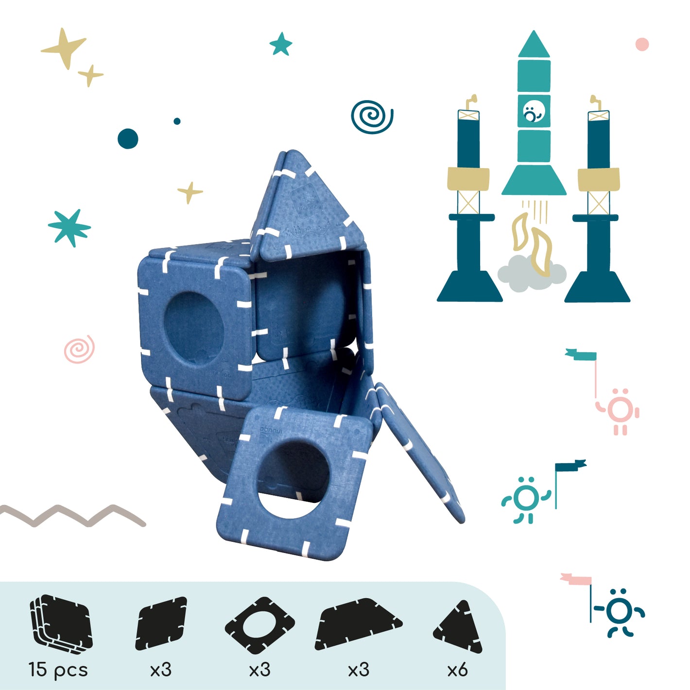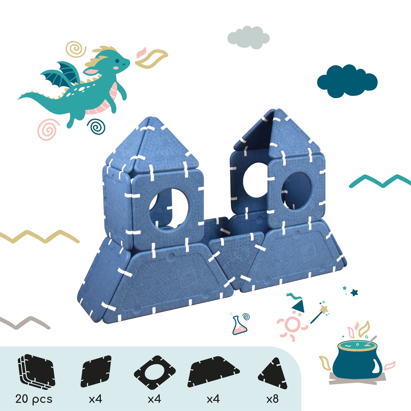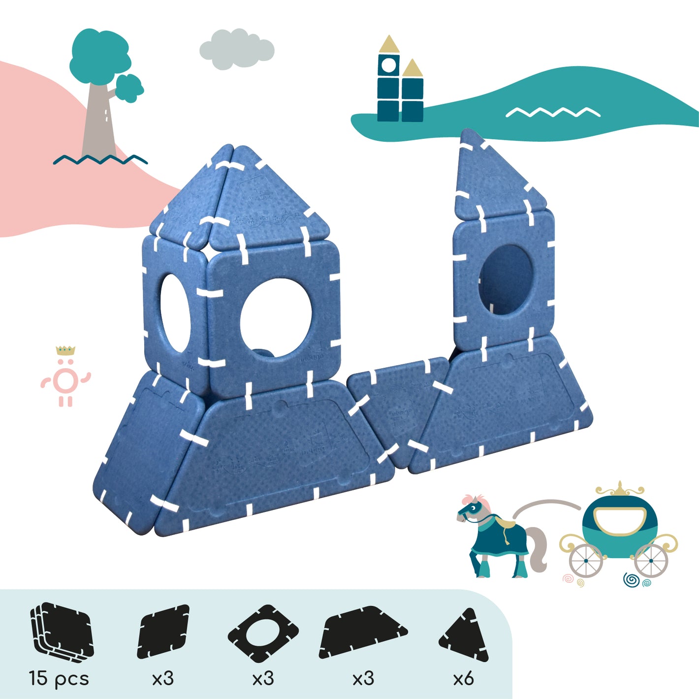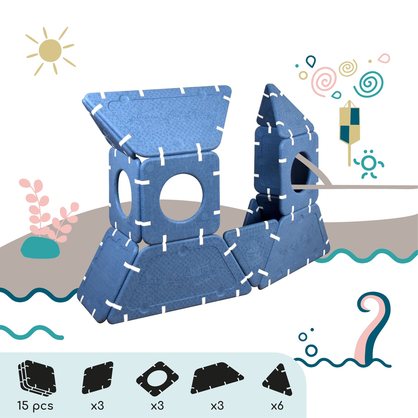Imagination cannot be guided, it must be set free. Shapes that serve ideas for dreams that can be assembled in infinite ways. And if you're lacking inspiration, this page is here to give you some inspirations and explain the different ways to play depending on age.