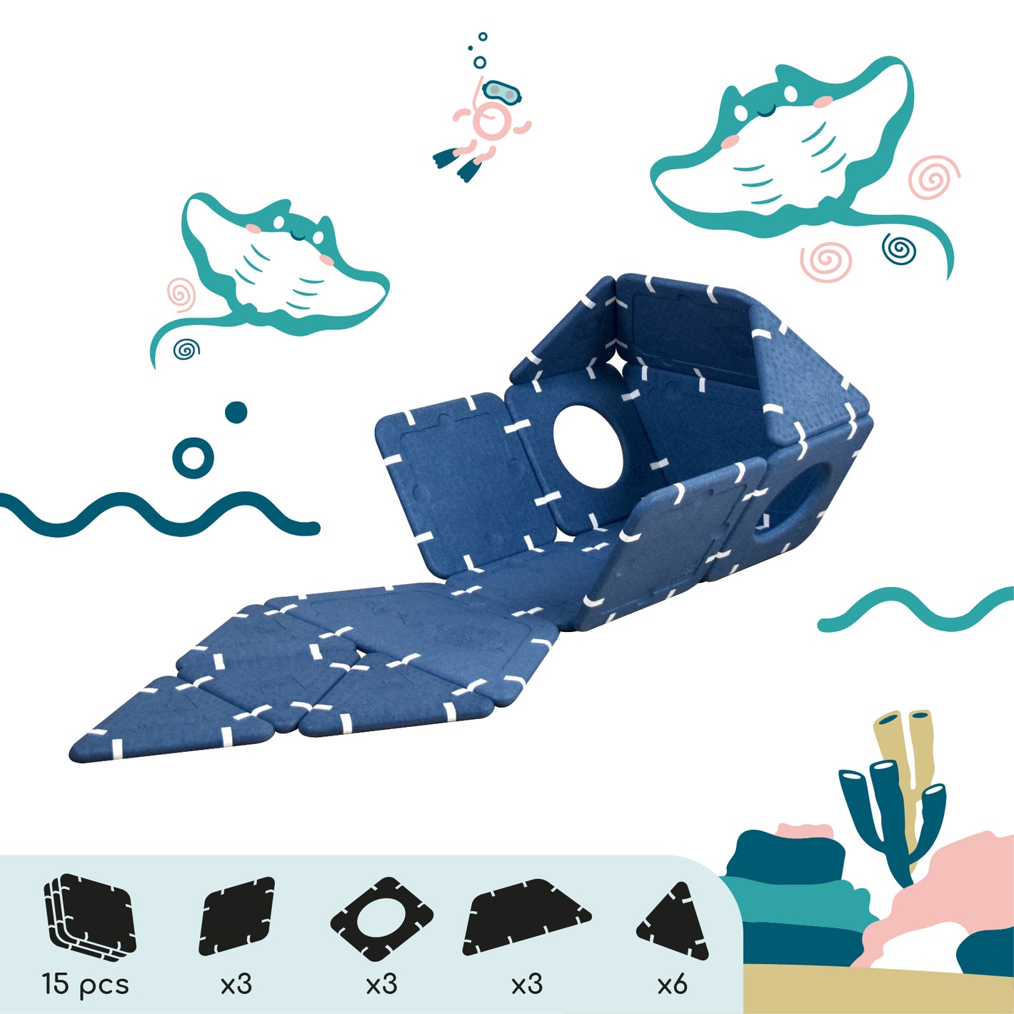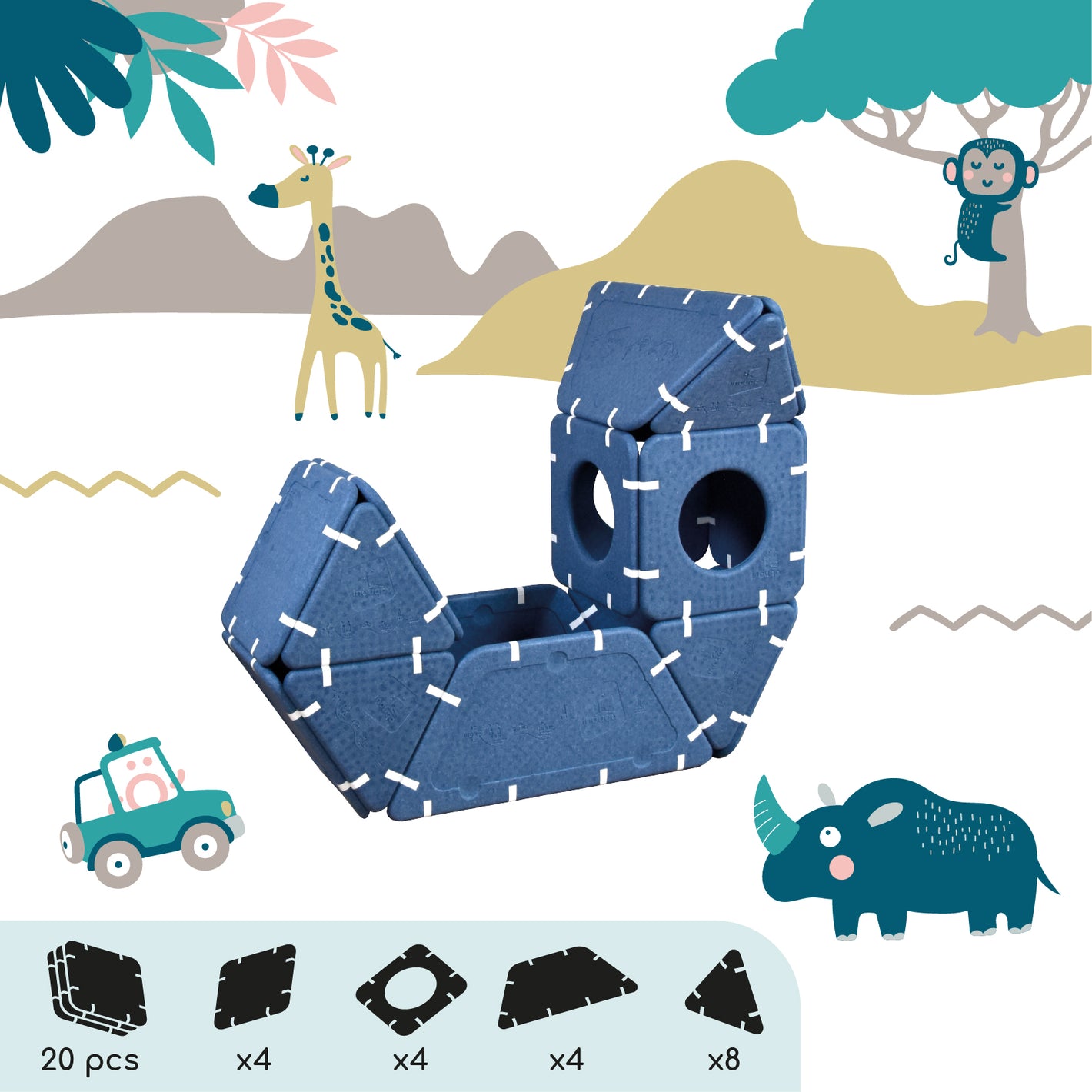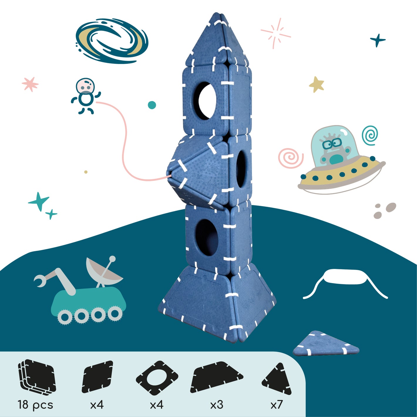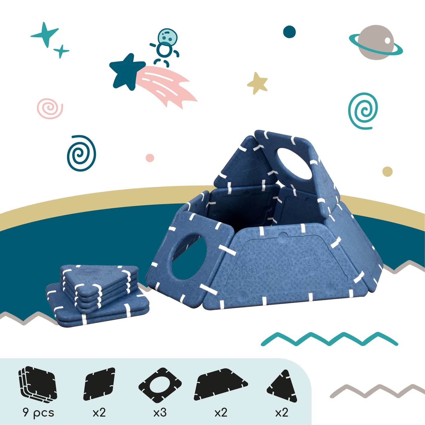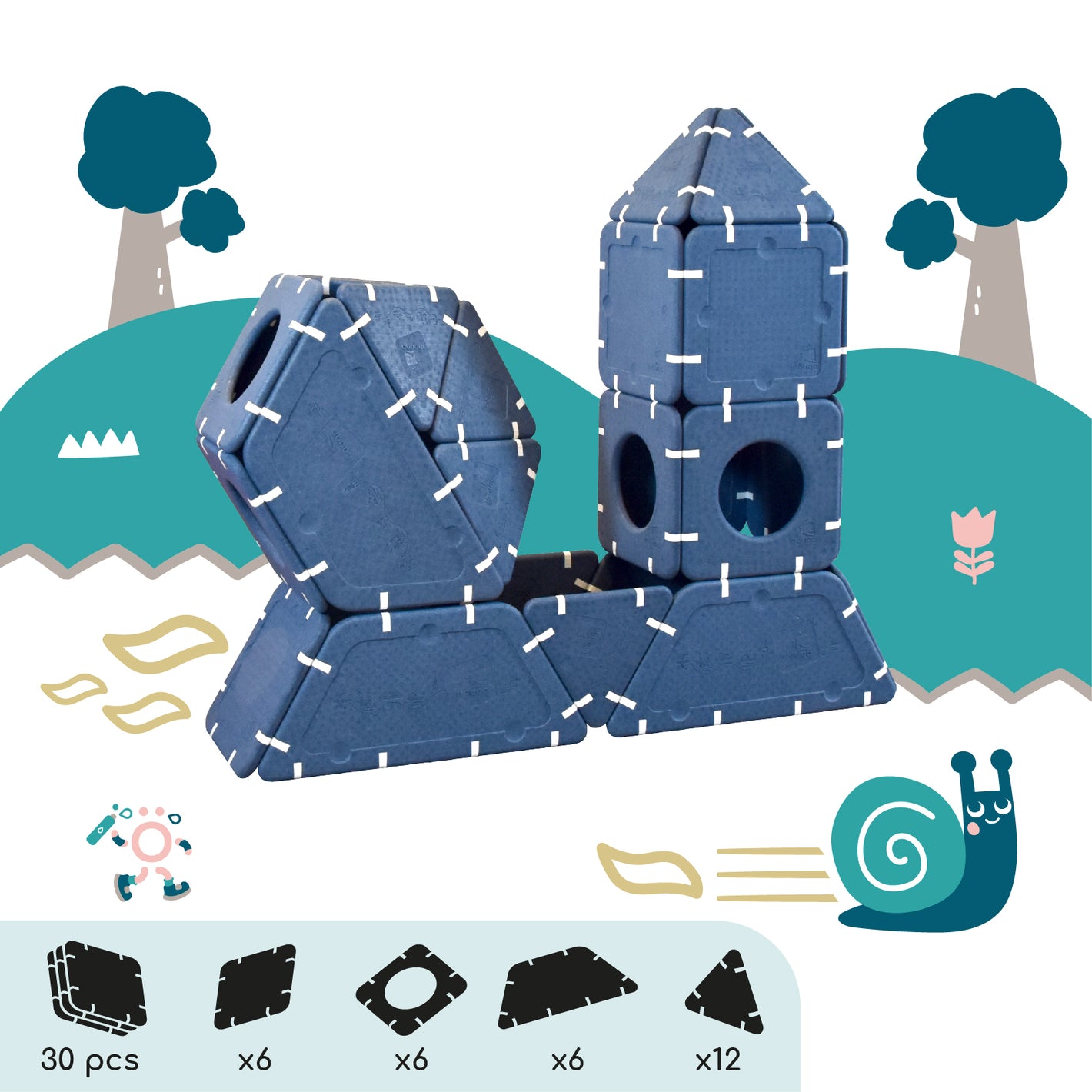 Imagination cannot be guided, it must be set free. Shapes that serve ideas for dreams that can be assembled in infinite ways. And if you're lacking inspiration, this page is here to give you some inspirations and explain the different ways to play depending on age.