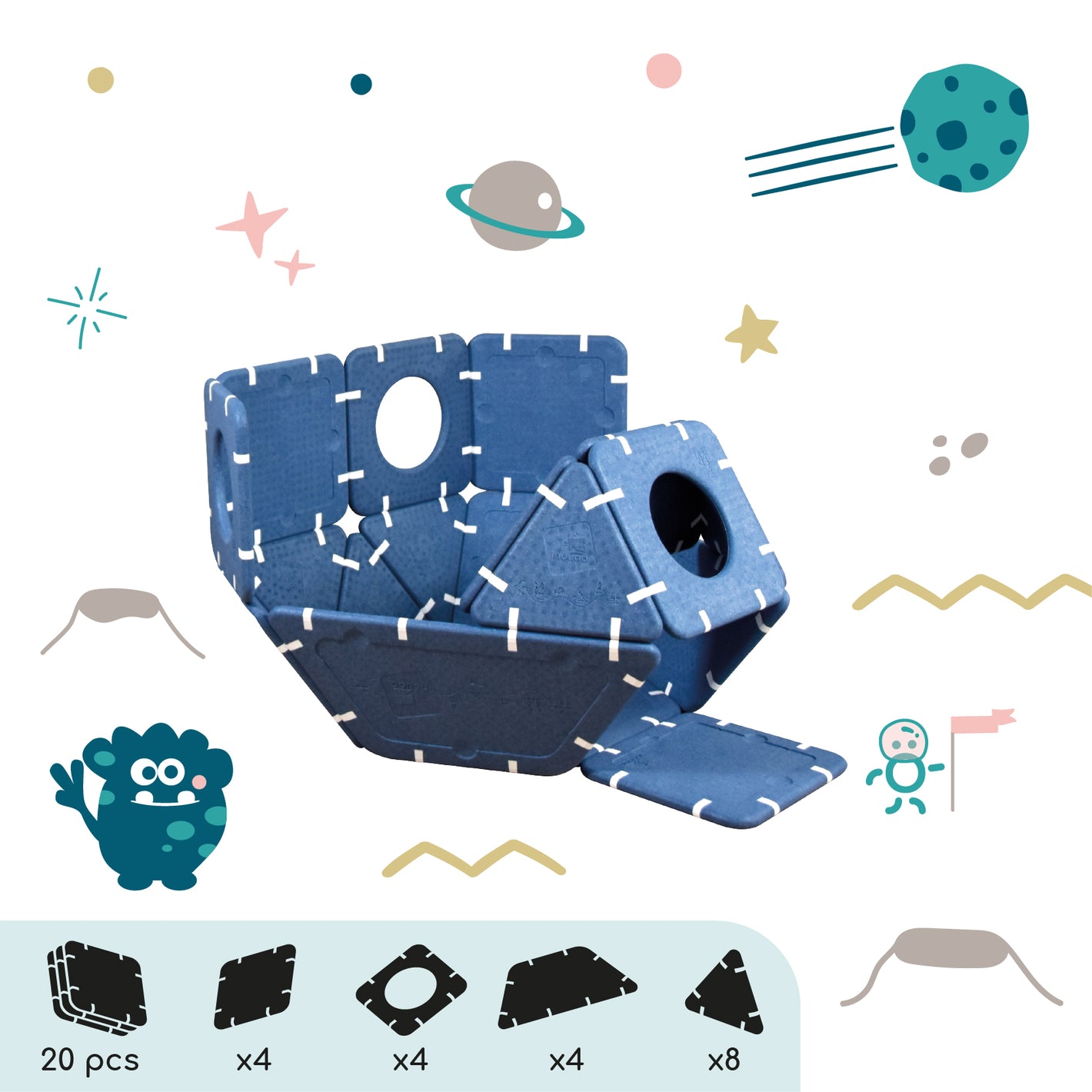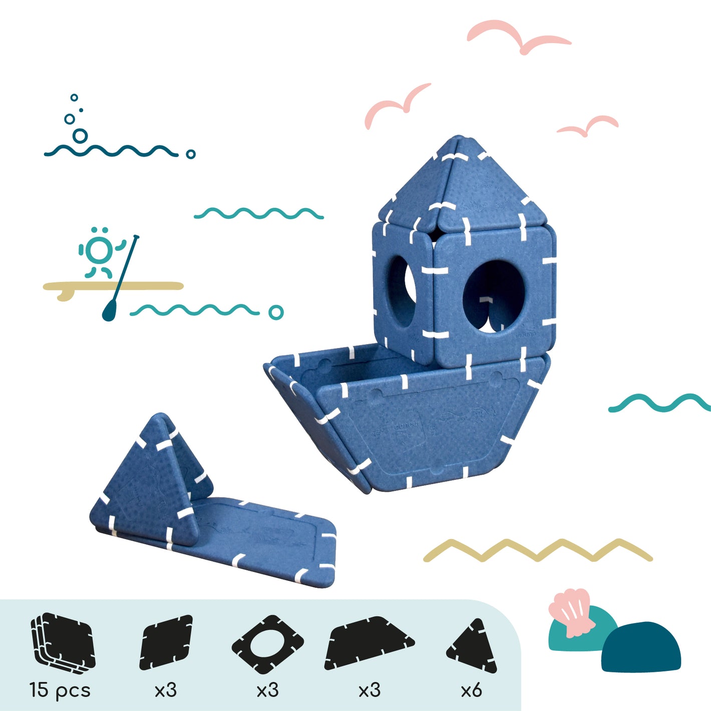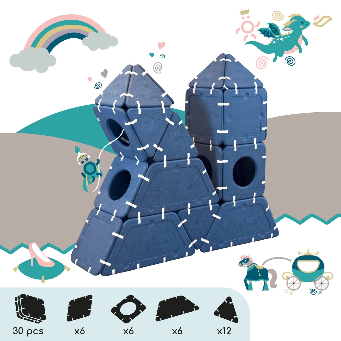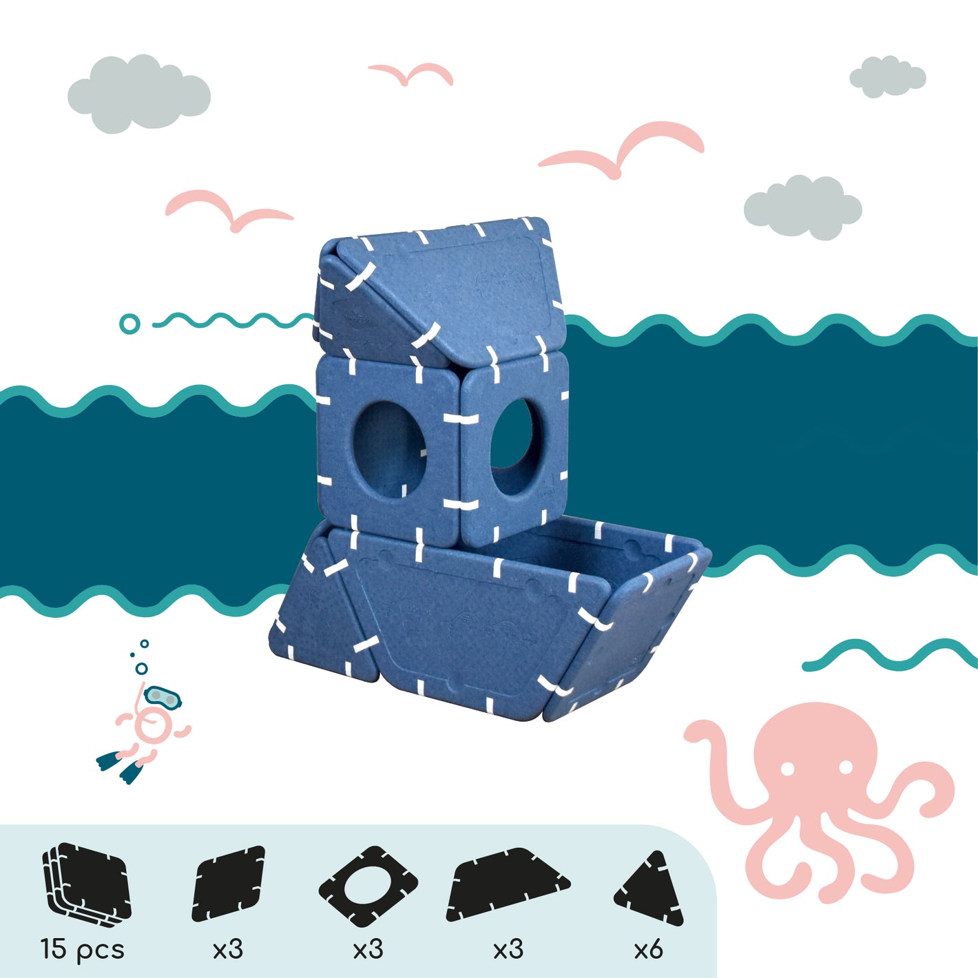 Imagination cannot be guided, it must be set free. Shapes that serve ideas for dreams that can be assembled in infinite ways. And if you're lacking inspiration, this page is here to give you some inspirations and explain the different ways to play depending on age.
