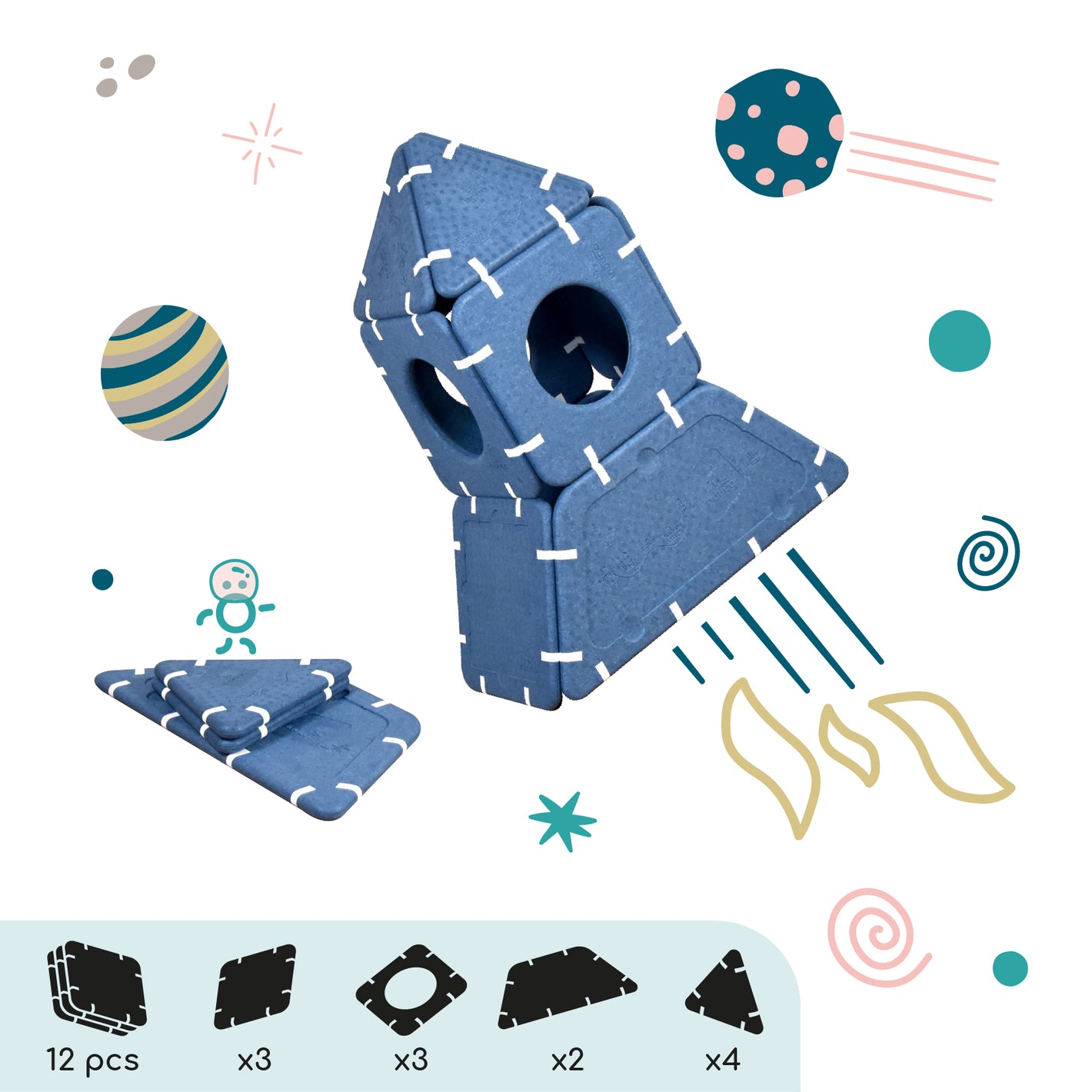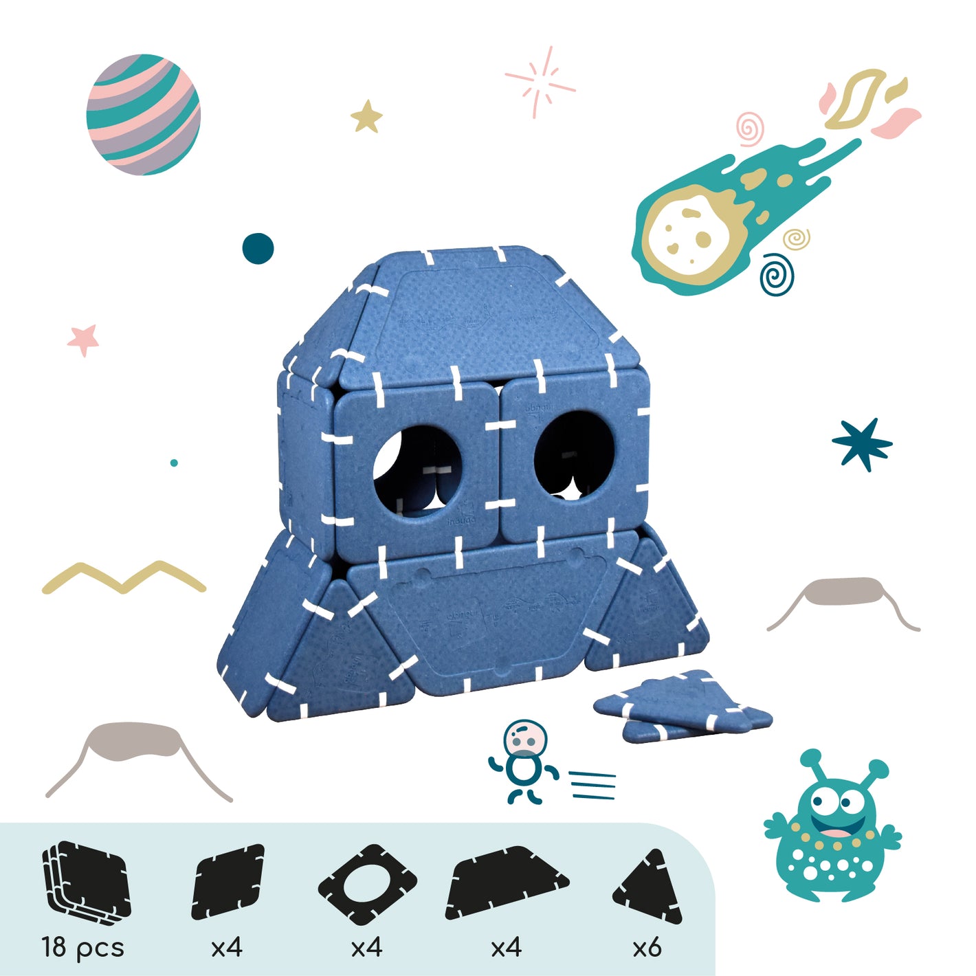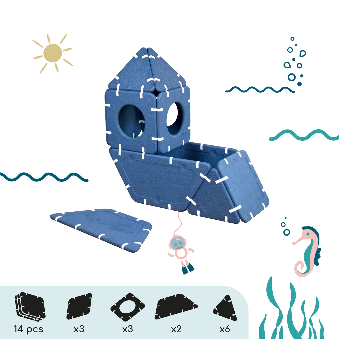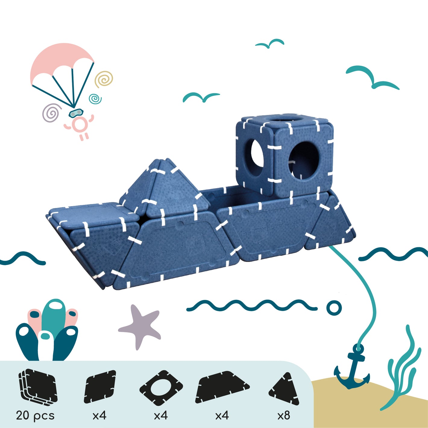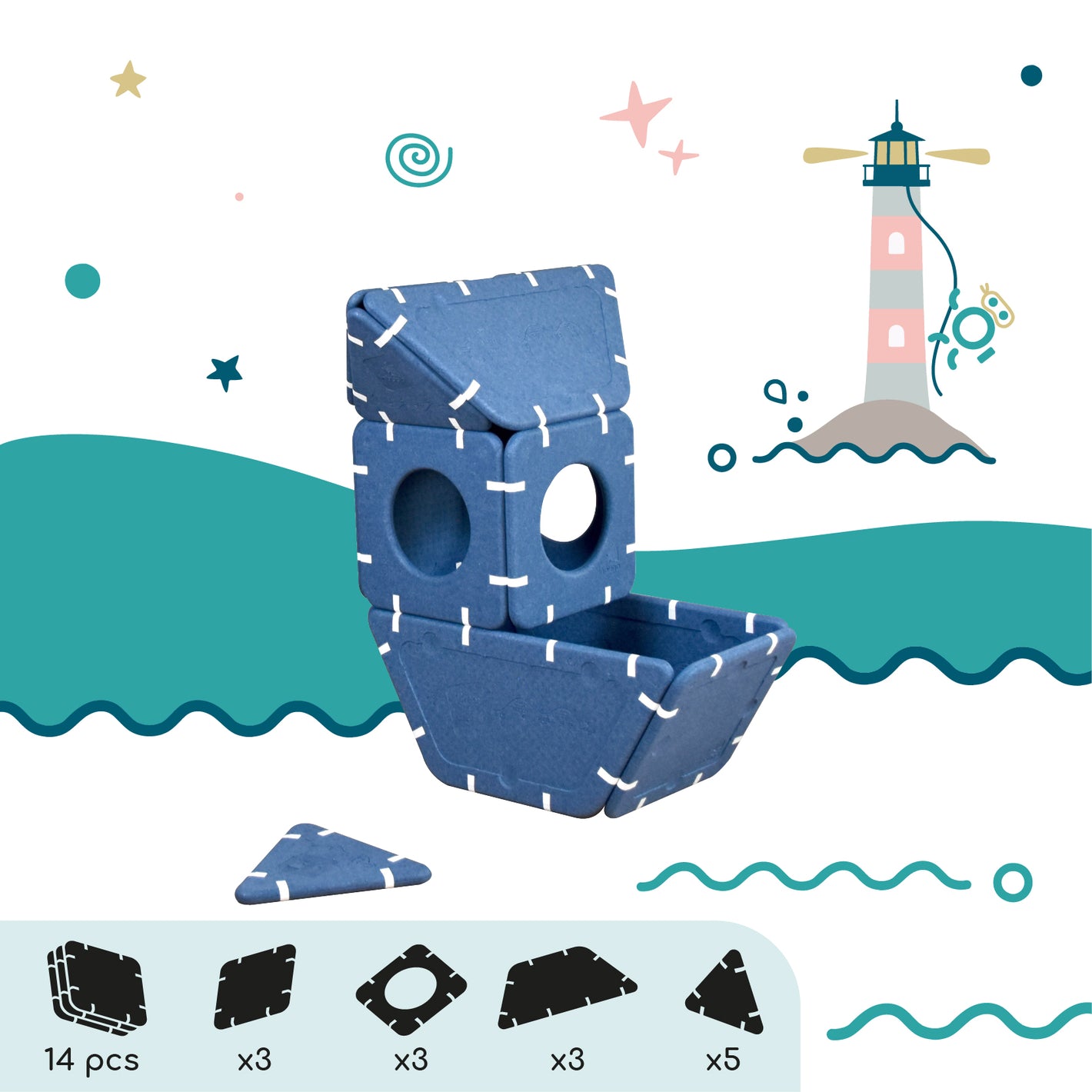 Imagination cannot be guided, it must be set free. Shapes that serve ideas for dreams that can be assembled in infinite ways. And if you're lacking inspiration, this page is here to give you some inspirations and explain the different ways to play depending on age.