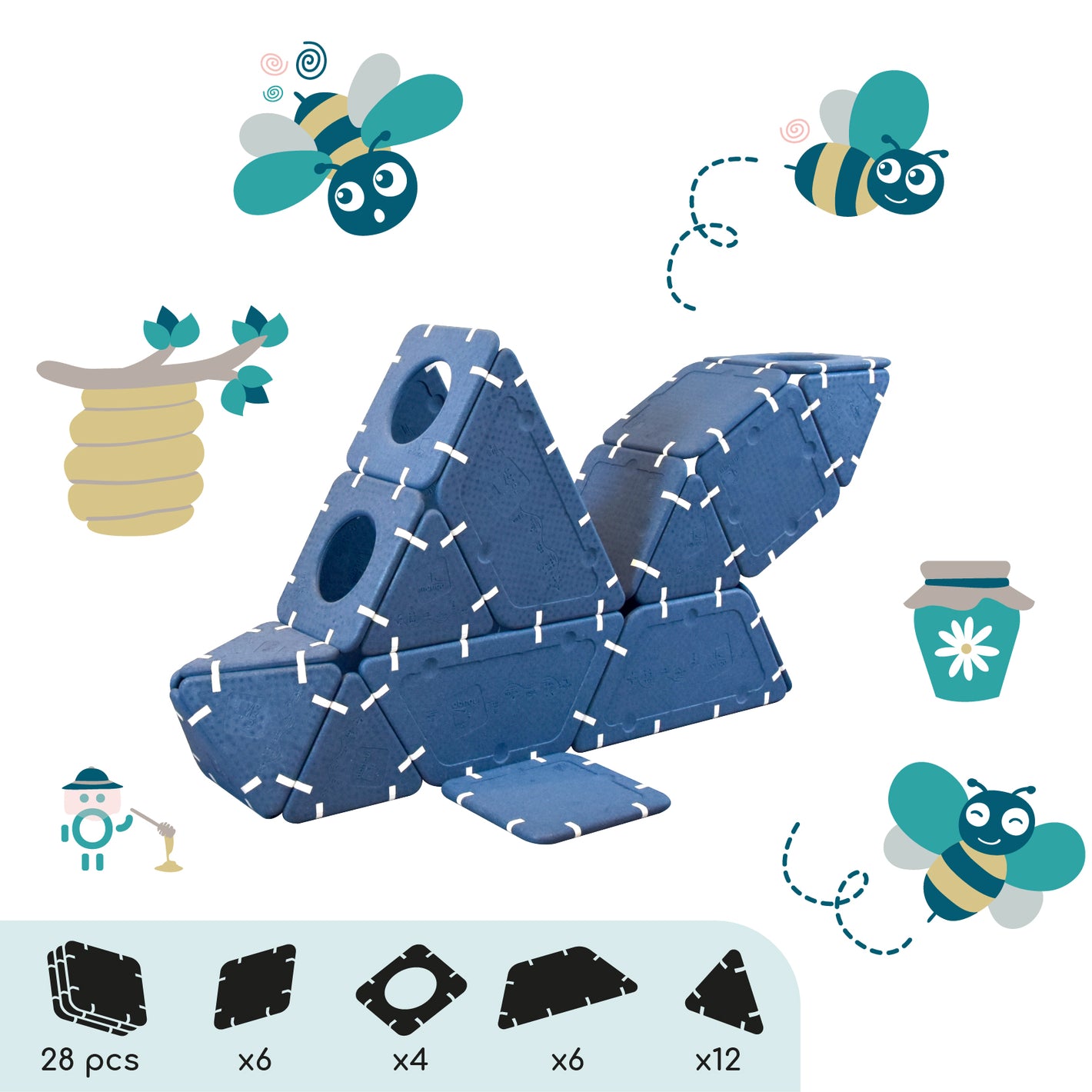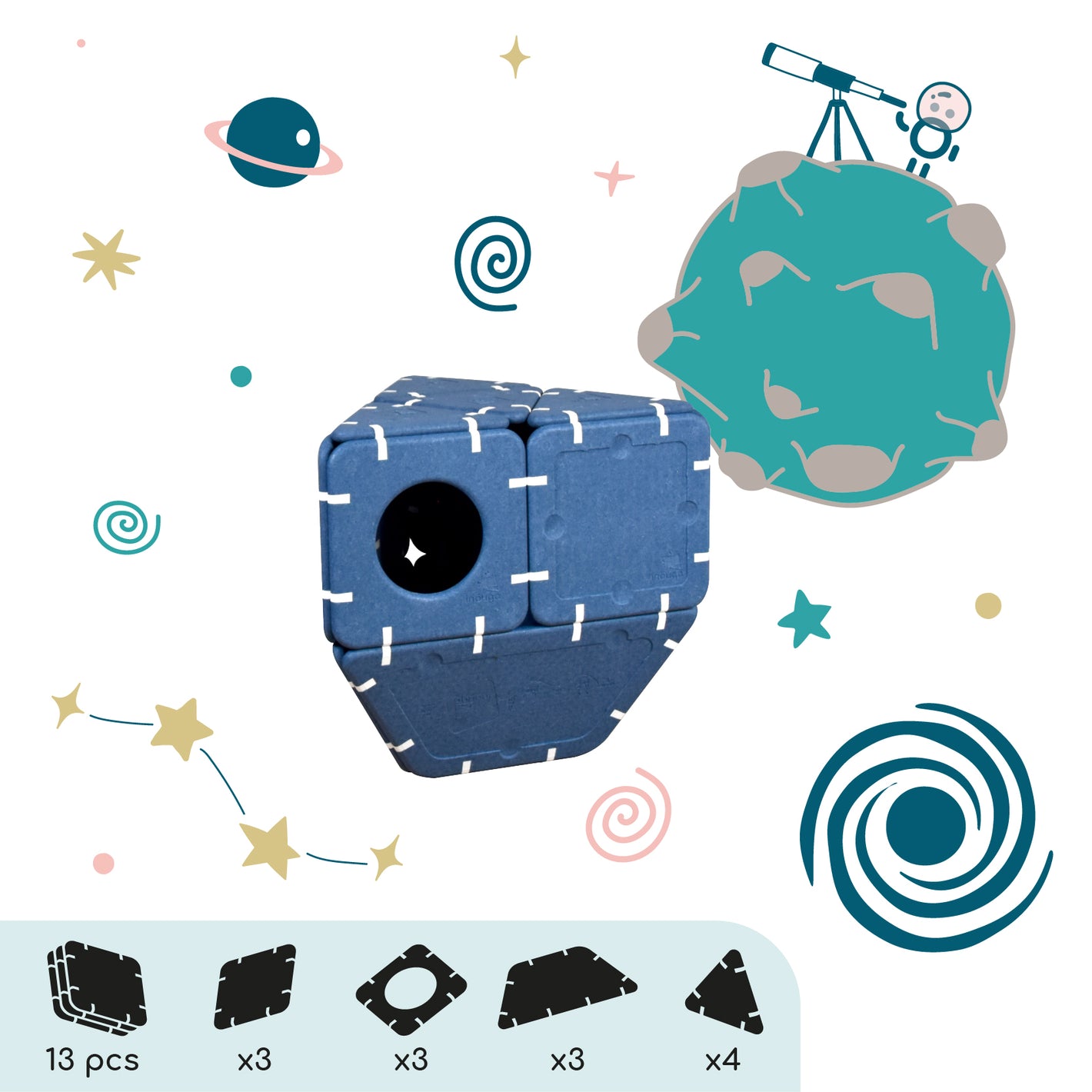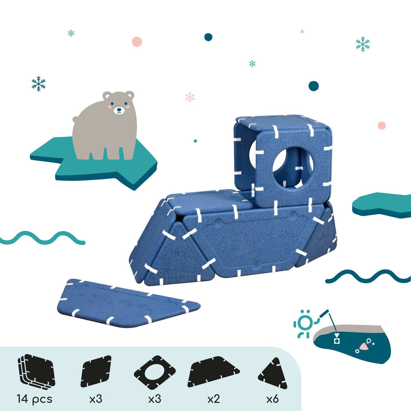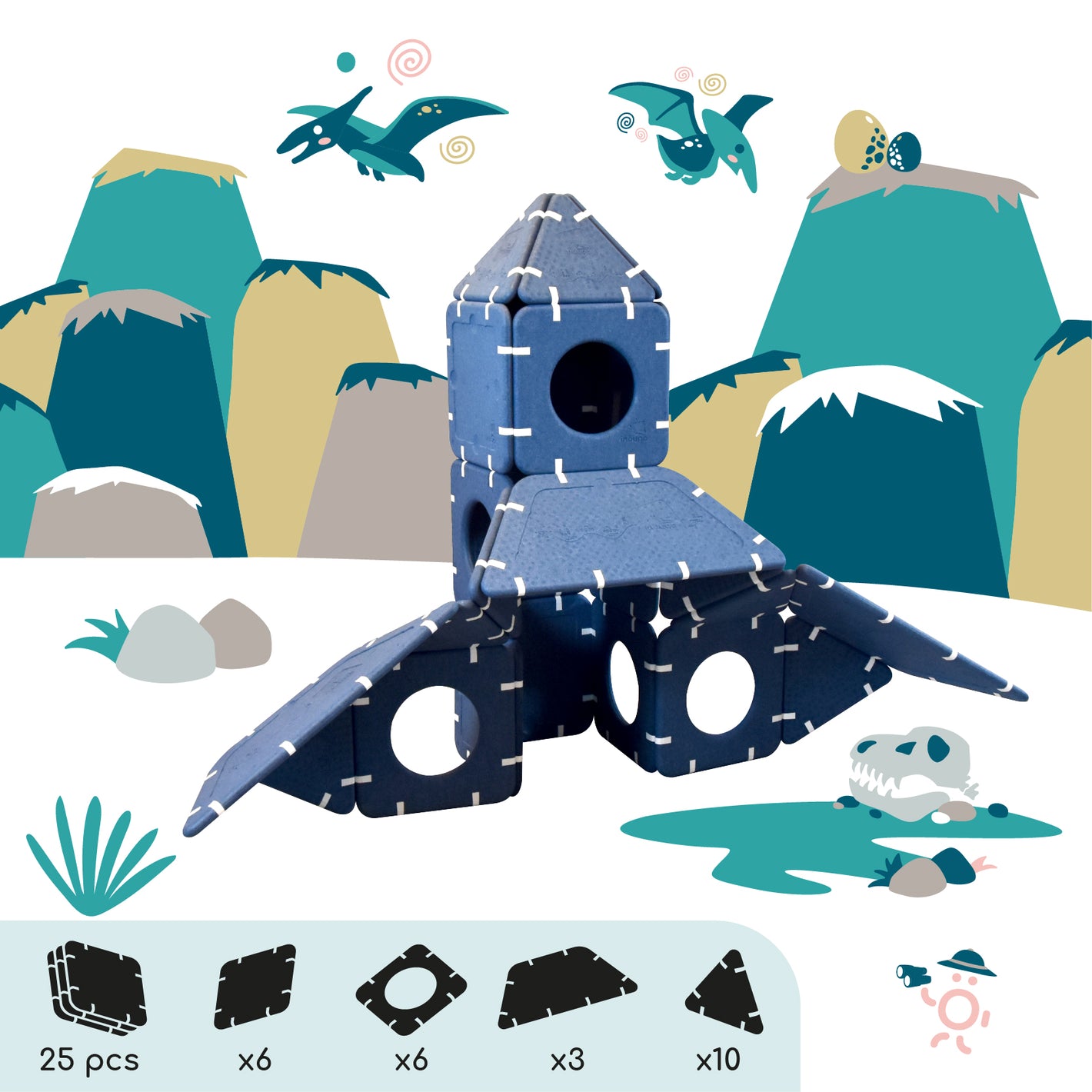 Imagination cannot be guided, it must be set free. Shapes that serve ideas for dreams that can be assembled in infinite ways. And if you're lacking inspiration, this page is here to give you some inspirations and explain the different ways to play depending on age.